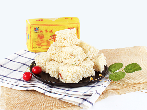 豐城市杜市星球凍米糖廠,是豐城食品生產(chǎn)中的地方傳統(tǒng)名產(chǎn)品。相傳已有兩百多年的生產(chǎn)歷史,以“江南小切,而出名。每年中秋一過,農(nóng)村家家戶戶把糯米飯涼干,炒成爆花米,用米糖拌粘,切成塊塊,待客解茶。這種糕點叫做“炒米糖”、“米花糖塊”。更講究者,用糯米飯做成凍米“干飯”,再用清茶油煎泡“干飯”,使“干飯,變成爆花米,再用飴糖粘結,冷卻后用薄刀切成小塊,前后經(jīng)過半成...